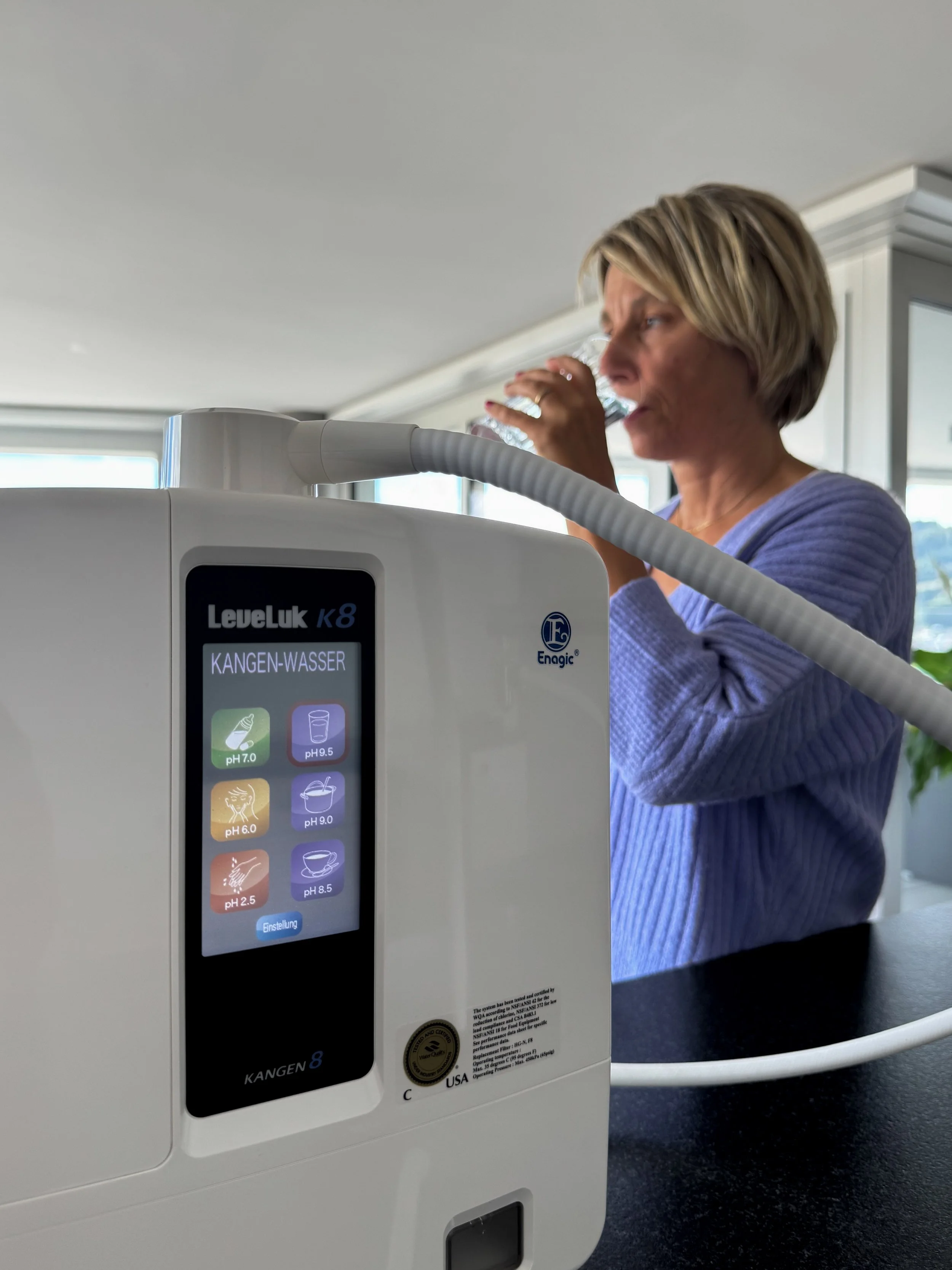 Das durch die Kangen-Maschine gefilterte Wasser zeichnet sich durch seine besondere Qualität aus und kann den Körper auf natürliche Weise unterstützen.